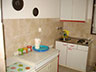 Prostrani dnevni boravak spojen sa kuhinjom i balkonom pruža idealno mjesto za odmor. U apartmanu ćete pronaći sve što je potrebno. Apartman je opremljen sa klimom, televizorom, SAT prijemnikom, kuhalom, hladnjakom, posuđem i posteljinom. Sastoji se od spavaće sobe za 2 osobe ( bračni krevet), dnevnog boravka sa kaučima za 2 osobe), kuhinje i kupatila. Postoji mogućnost pomoćnog kreveta za 5. osobu. |